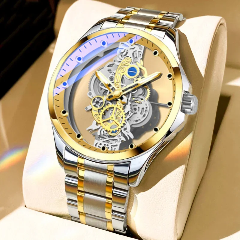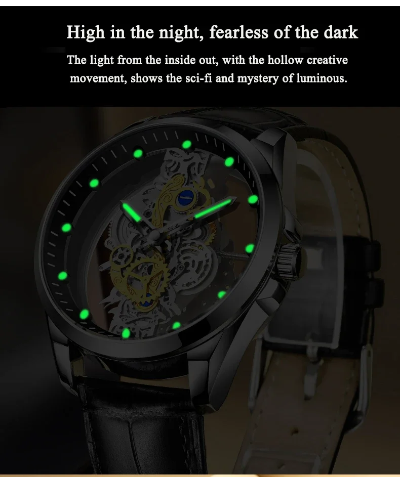 Double Sided Transparent Skeleton Automatic Mens Watch Waterproof Luminous Quartz Watch TikTok New Arrival