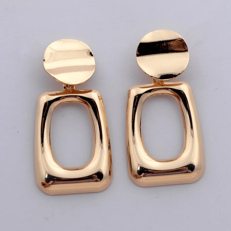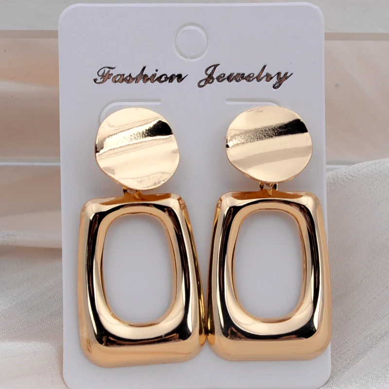 European Fashion Round Hollow Out Square Oval Drop Earrings for Women Wedding Party Classic Jewelry Geometry Metal Earrings
