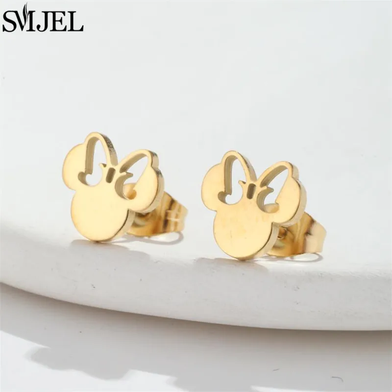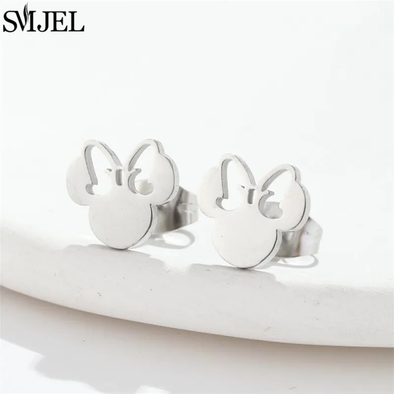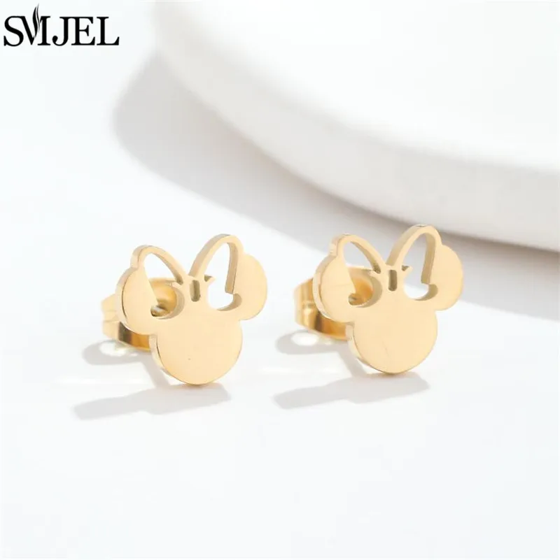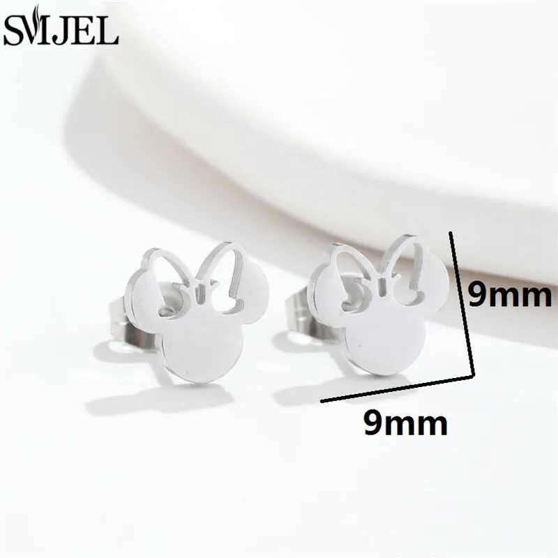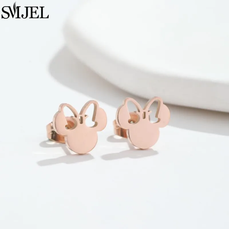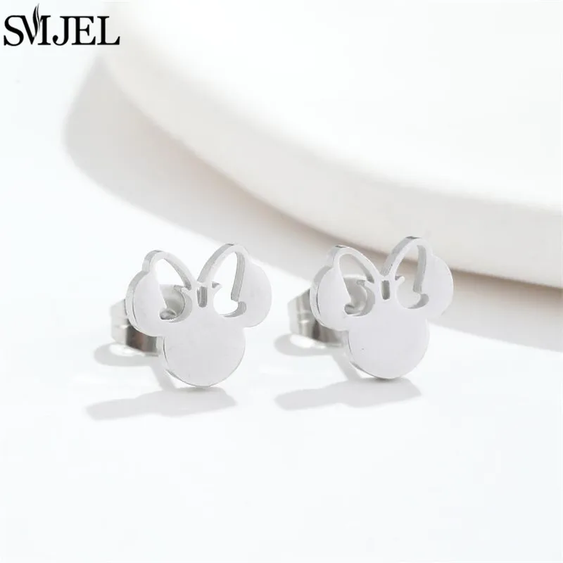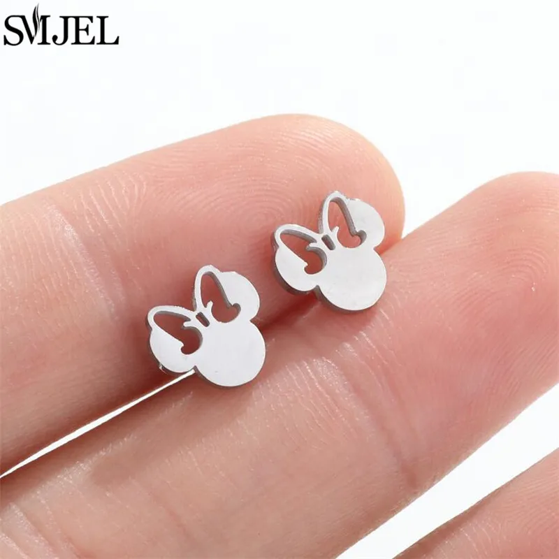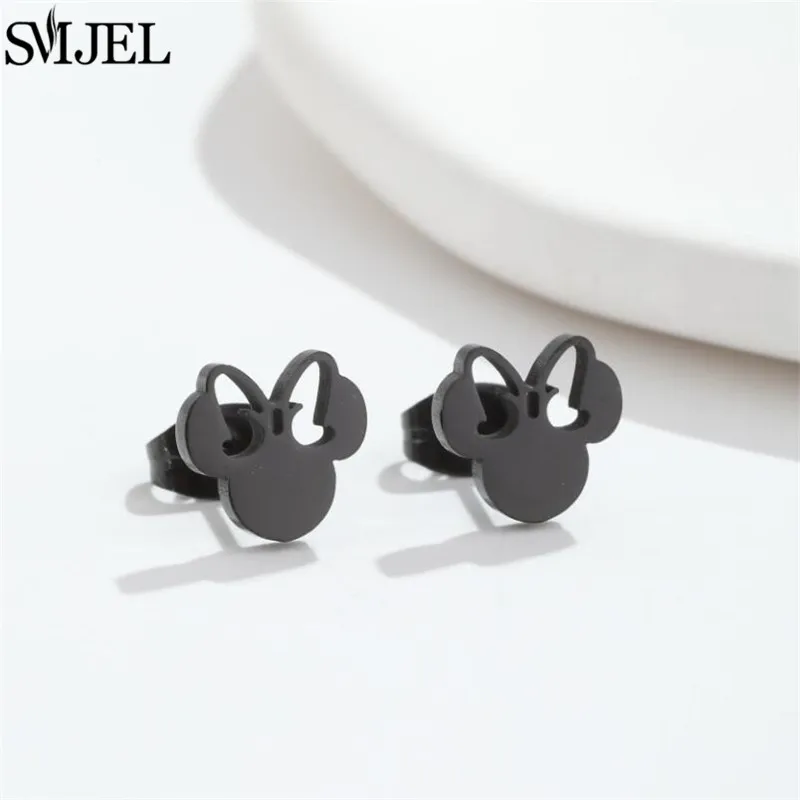 Fashion Cute Mini Mouse Ear Stud Earrings For Women Stainless Steel Minnie Girls Piercing Earings Jewelry Accessories Gifts