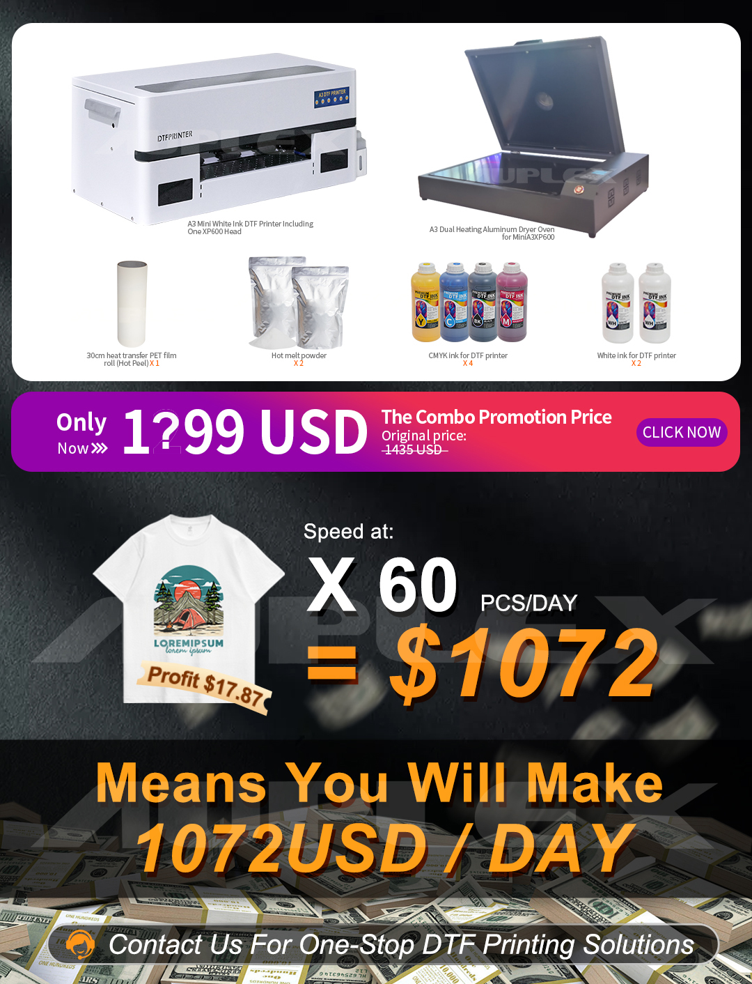 174 200 CFAAjouter au panierCaractéristiques du produit tête d’impression Epsons Couleur et page Multicolore Type de plaque Imprimante DTF Note Automatique Manuel Matériel MÉTAL Type d’encre Encre pigmentée Garantie 1 an État Nouveau Point d’origine Fujian, China Marque nom AUPLEX Dimensions (L*W*H) 85*42*48 cm Poids 15 Taille de chauffage A3 (320*400mm) Nom du produit Four de chauffage pour film …