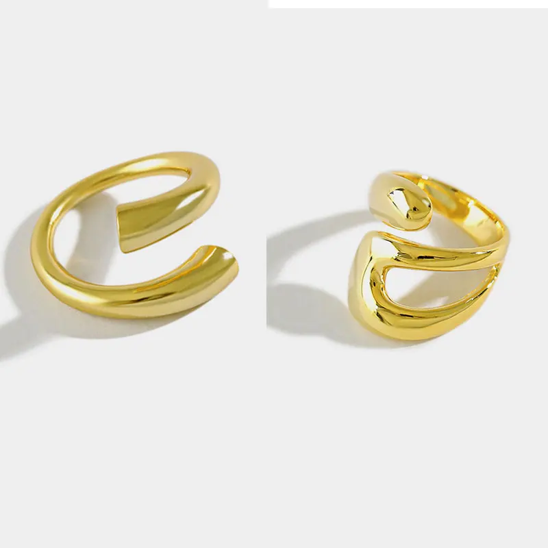 Stainless Steel Chunky Wide Rings For Women Vintage Gold Color Geometric Open Finger Ring Fashion Minimalist Jewelry Gift Femme