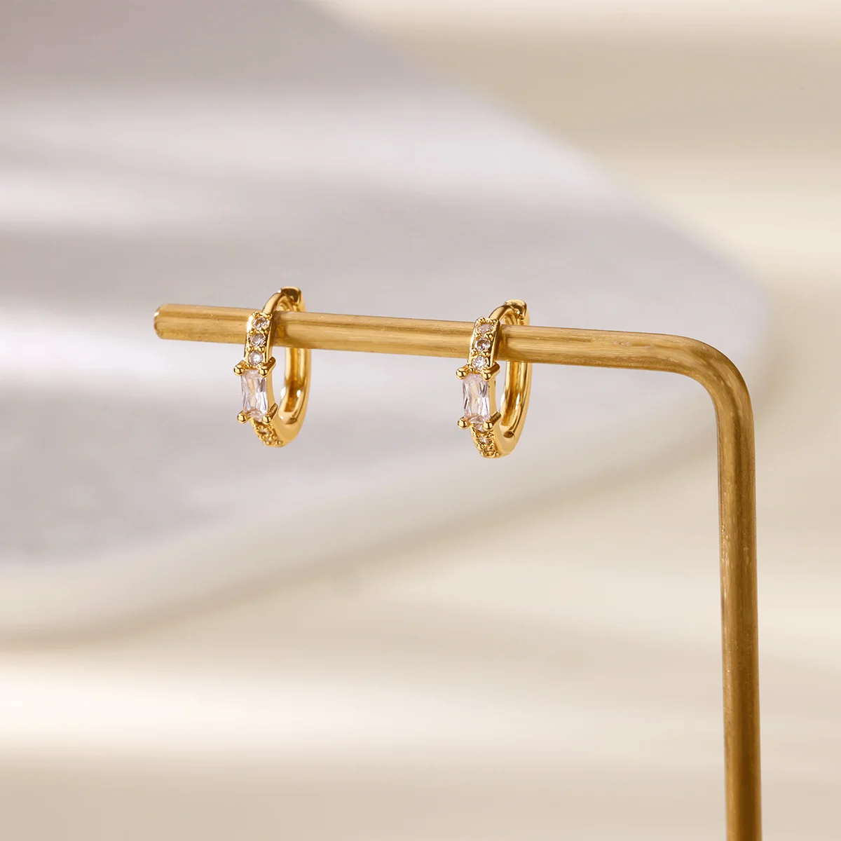 Free Shipping Luxury Geometric Cubic Zirconia Hoop Earrings For Women Stainless Steel Piercing Earring Fashion Wedding Jewelry