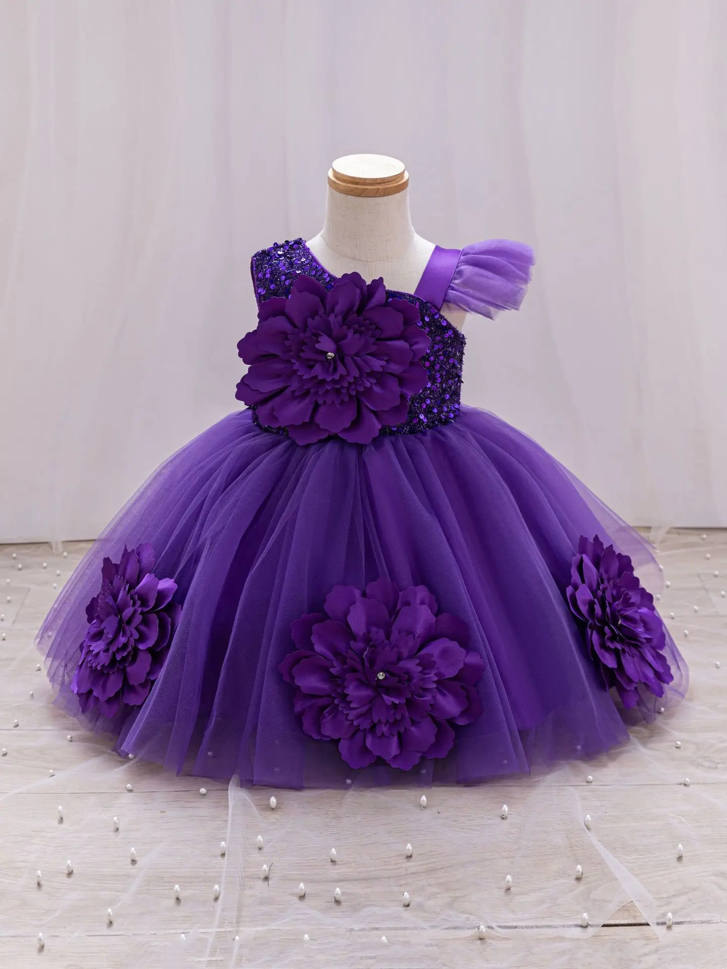 Girls princess dress 1-5 Y baby Girls wedding sleeveless three-dimensional butterfly mesh carnival birthday party evening dress