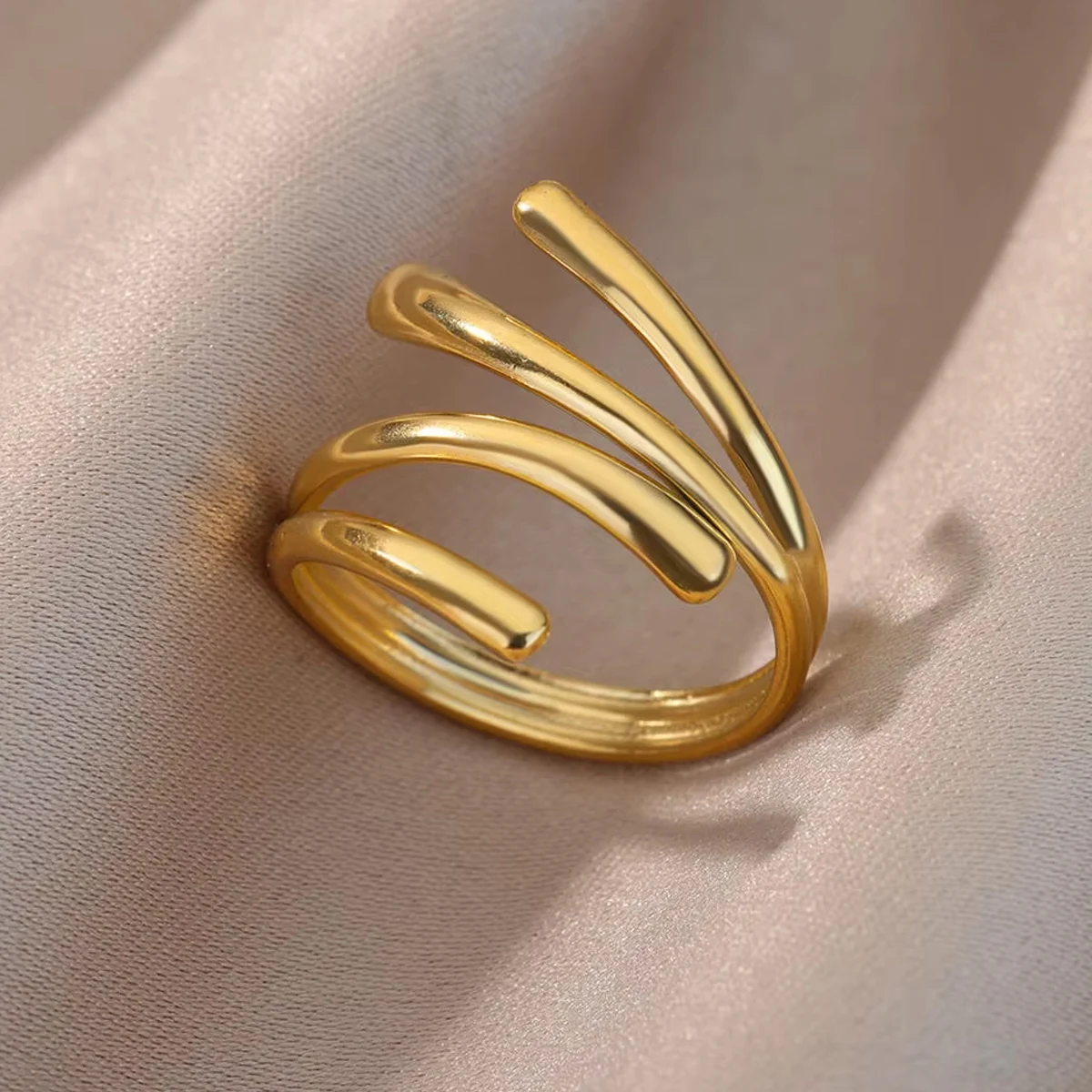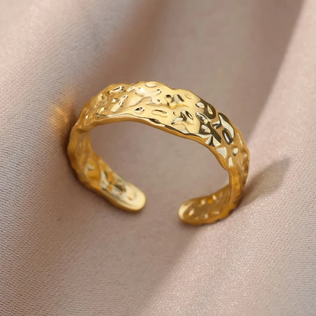Name:Gold Metal Irregular Geometric Opening Women's Ring Gold Texture Couple Wedding Ring Fashion Jewelry