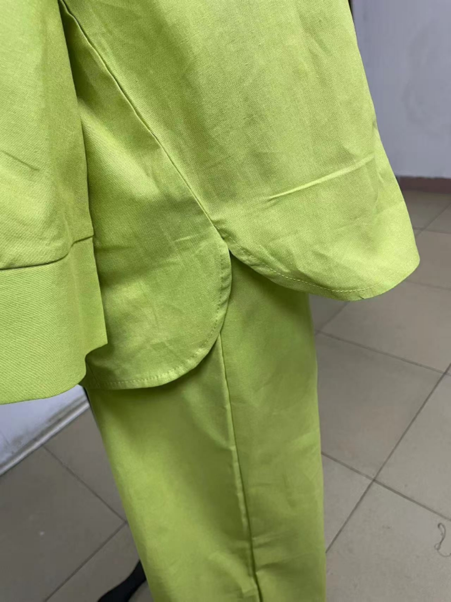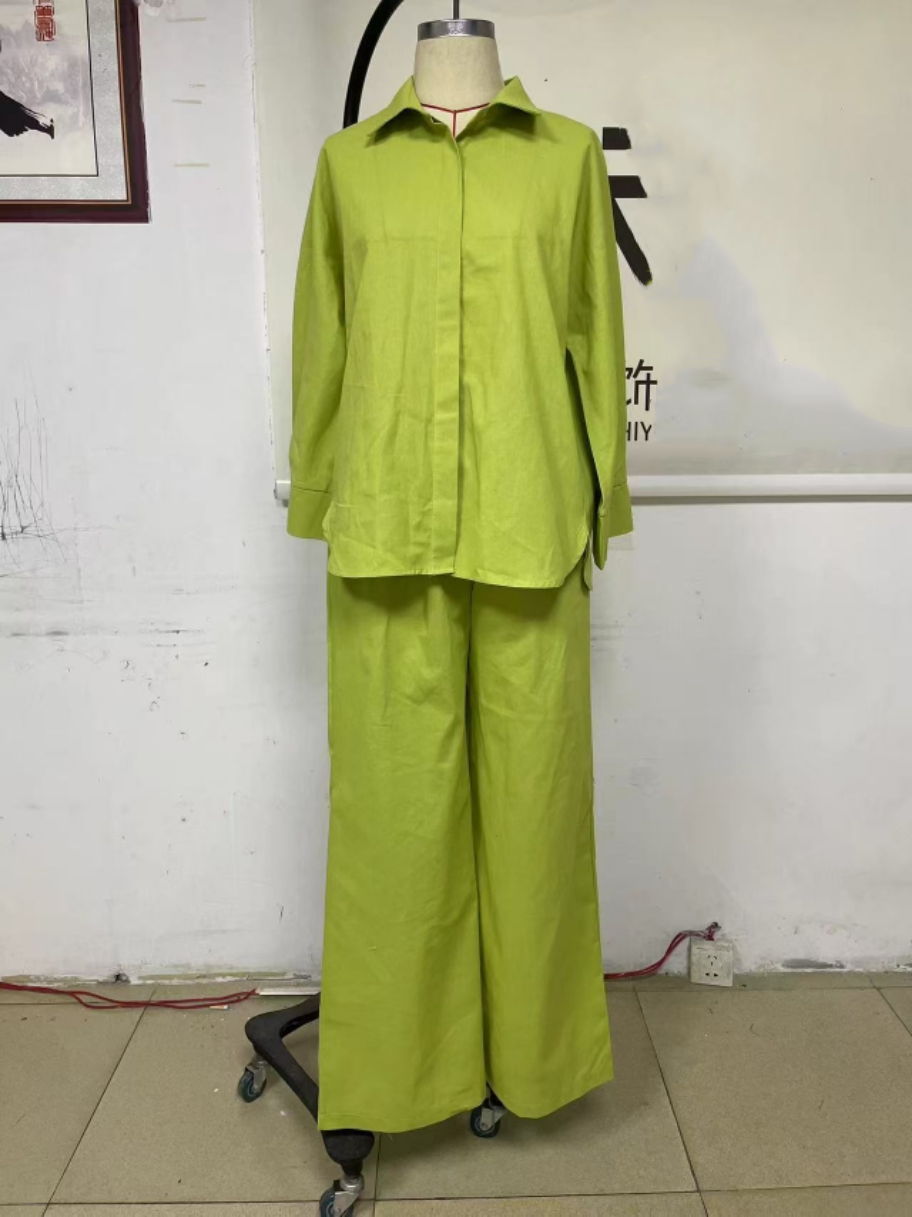 GX18120 Mode Printemps Automne Femme Grande Taille Street Wear Femmes Tenue en lin Chemise à manches longues et pantalon à jambes larges Ensemble 2 pièces