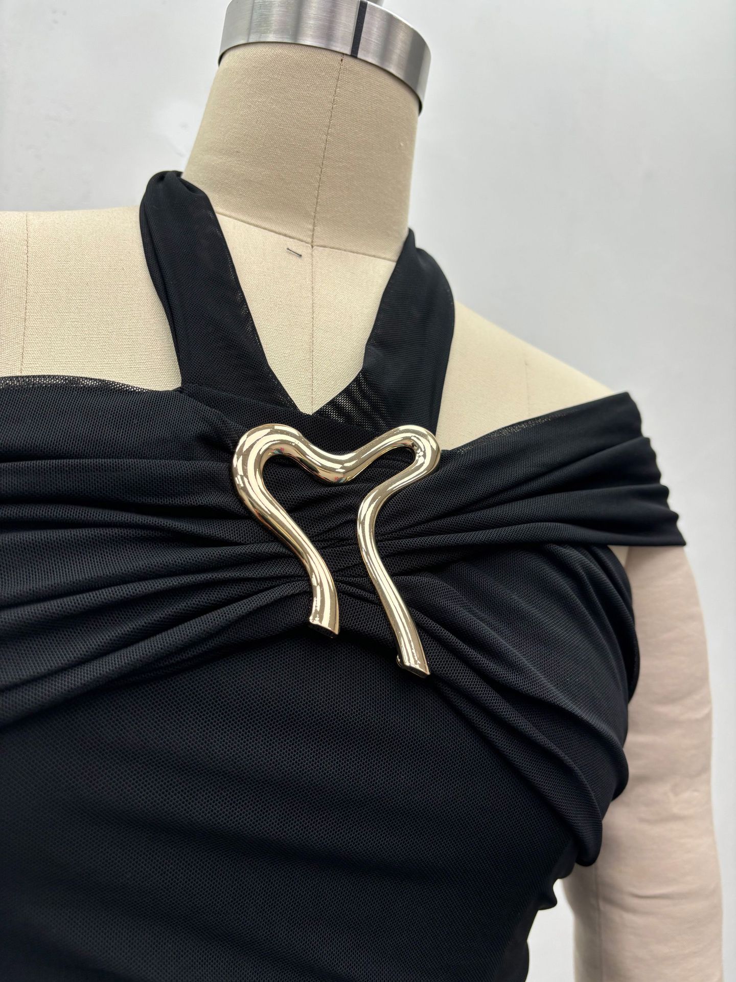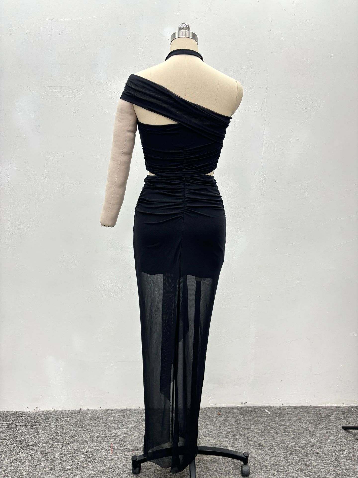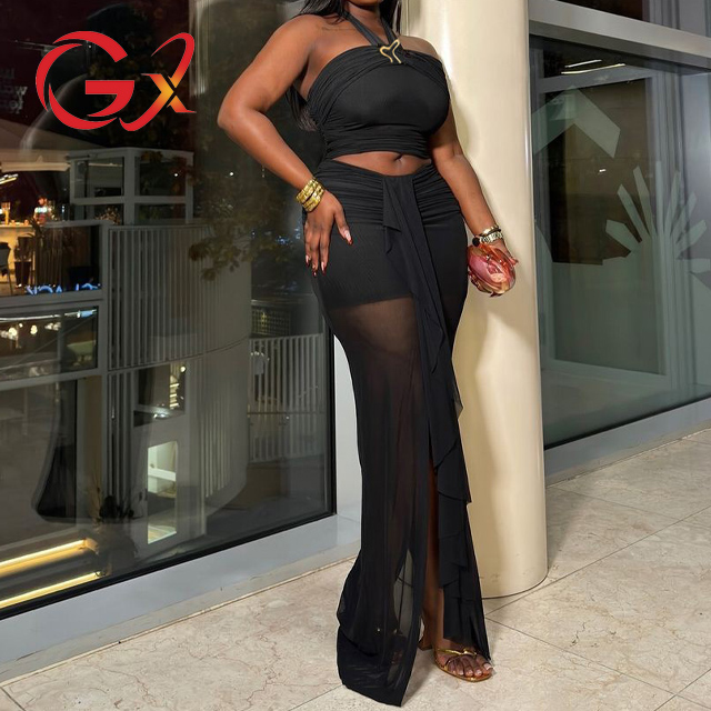 GX3224 Nouveau Women Boutique Street Wear Summer Halter Cropped Top and Mesh Split Maxi Skirt 2 Piece Set
