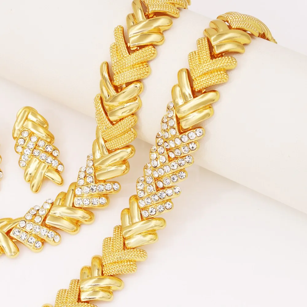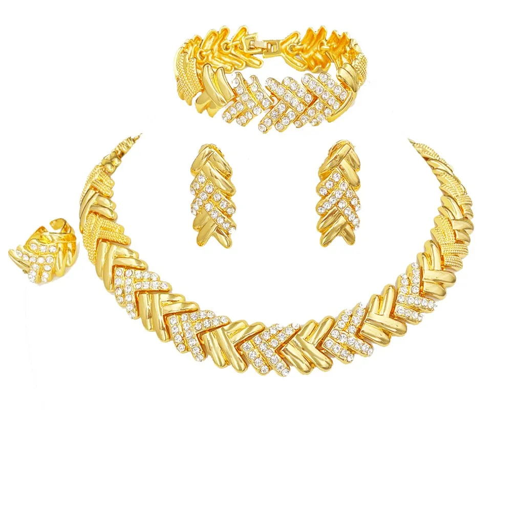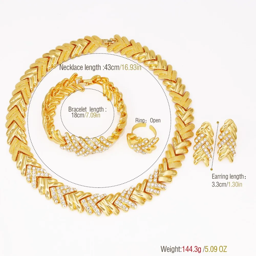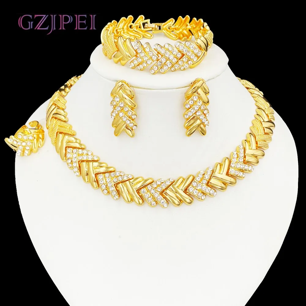 GZJPEI Fashion Crystal Jewelry Set Luxury Gold Plated Necklace Bracelet Wheat Ear Earring Ring Nigeria Wedding Gift 2025 New