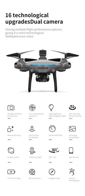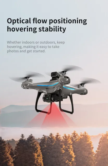 1. The front lens is placed with wide-angle 8K high-definition WIFI, and the optical flow high-definition lens at the bottom can switch the camera angle. The servo gimbal design increases stability, adding EIS electronic anti-shake, the picture lines are clearer.