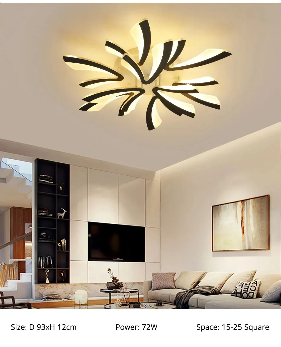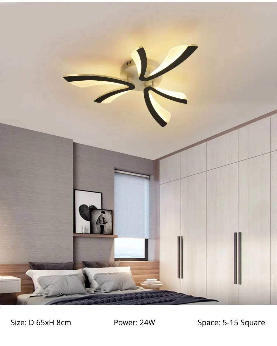 Moderne LED-Deckenleuchte, 36 W Modern Schwarz LED Deckenlampe in Blumenförmiges Design 3000K LED-Deckenleuchte für Schlafzimmer