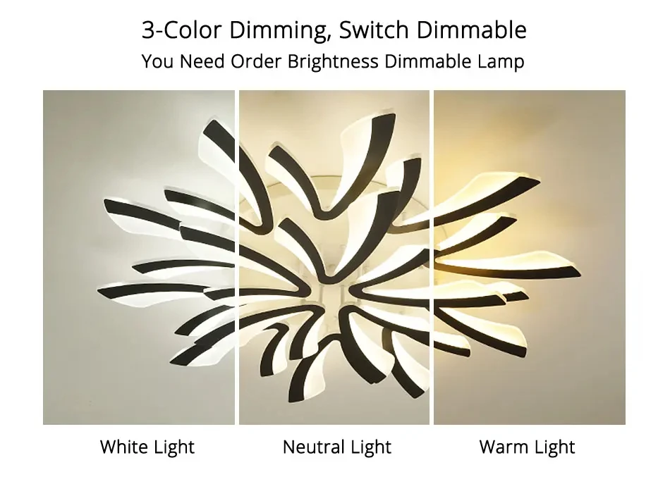 ③:Dimmable:Three-color light (white light/warm light neutral light), the color of the light can be switched by the wall switch, or the color of the light can be switched by the remote control, and the brightness and color temperature of the light can be adjusted, with a remote control.