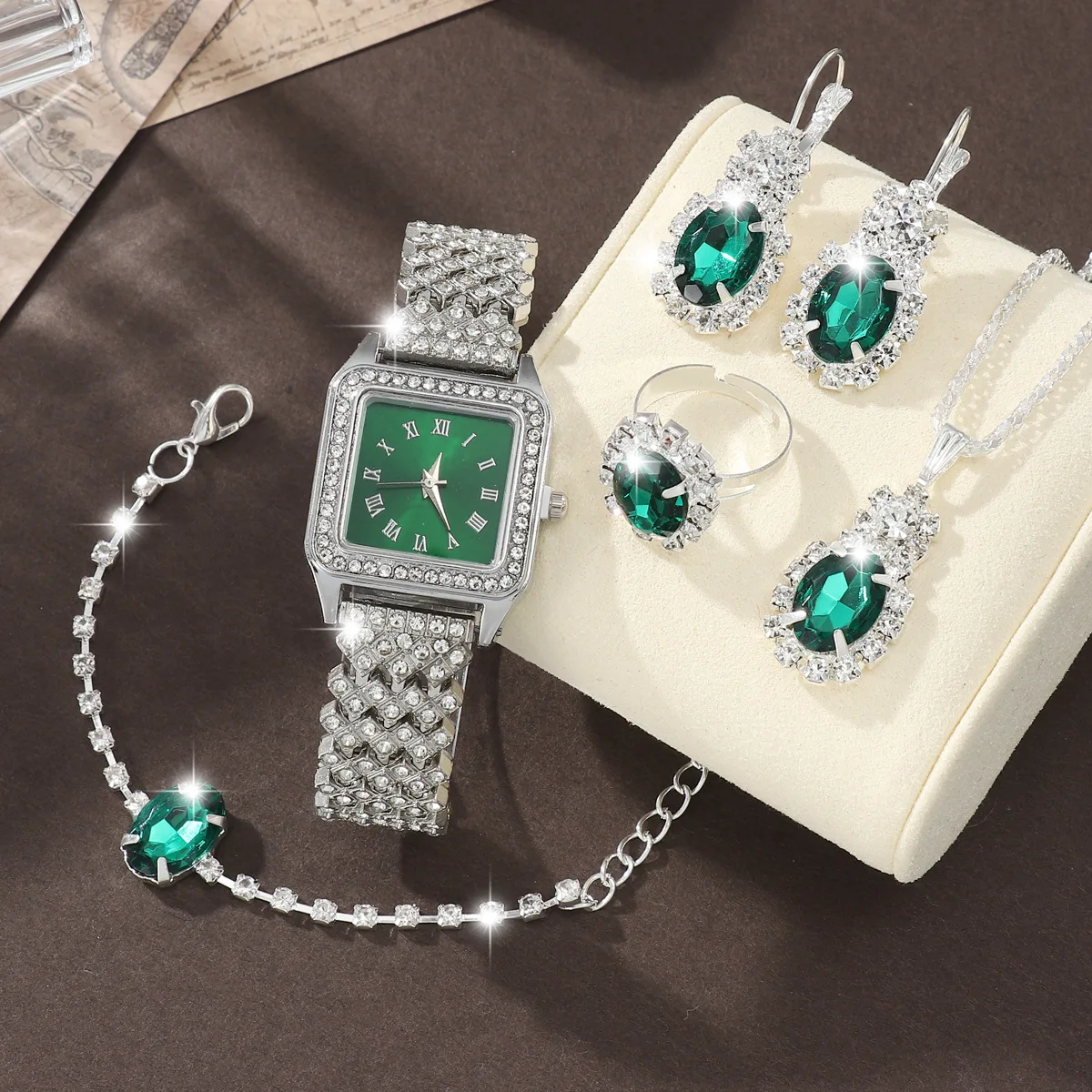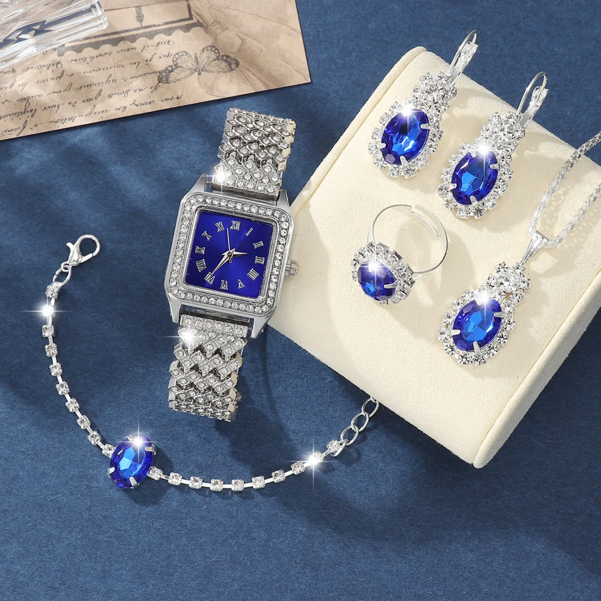 New 5PCS Arabic Numerals Women Watch set Rhinestone Jewelry Colorful Diamond Roman Numerals Quartz Wristwatches Exquisite Set