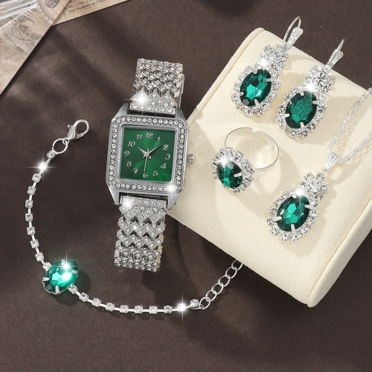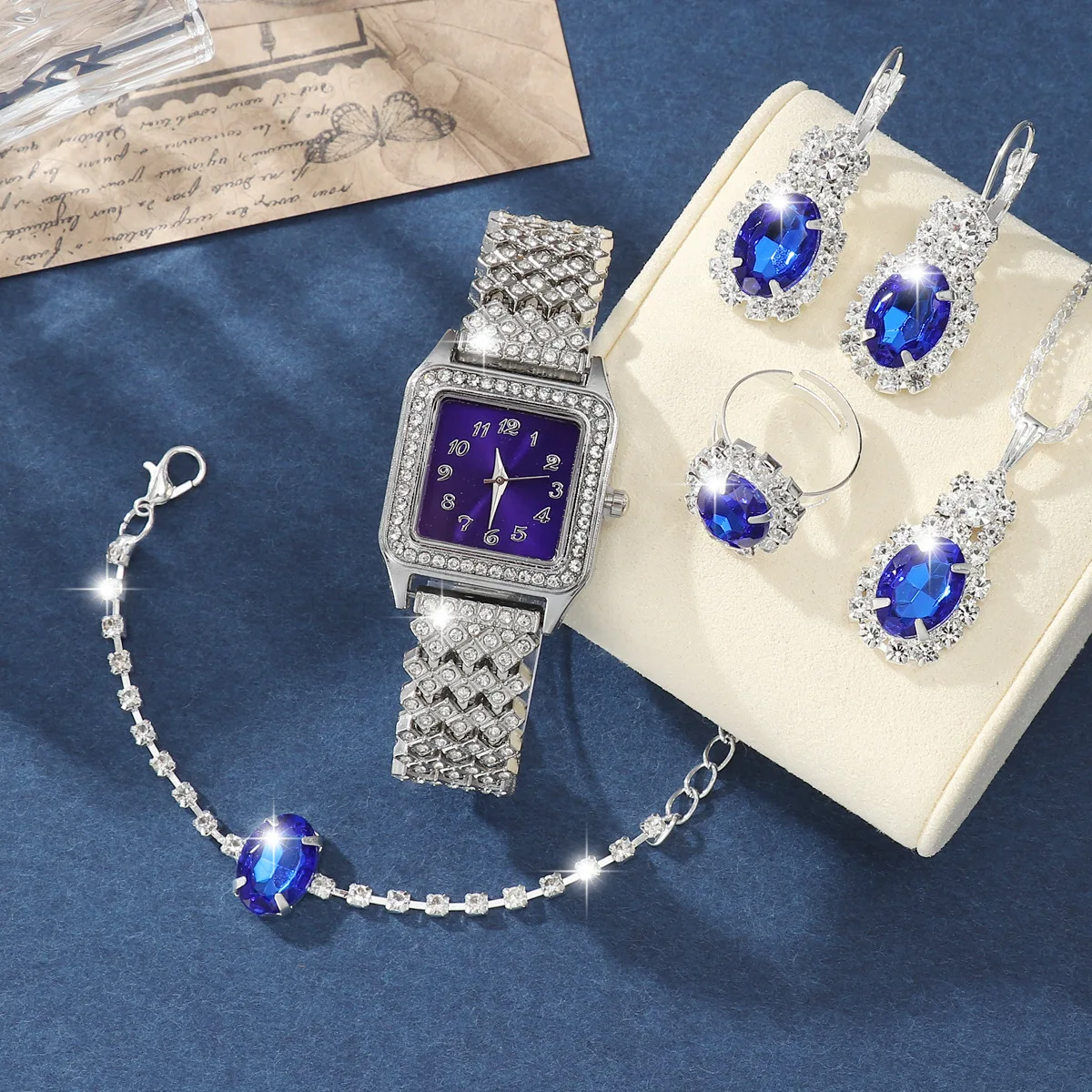 New 5PCS Arabic Numerals Women Watch set Rhinestone Jewelry Colorful Diamond Roman Numerals Quartz Wristwatches Exquisite Set