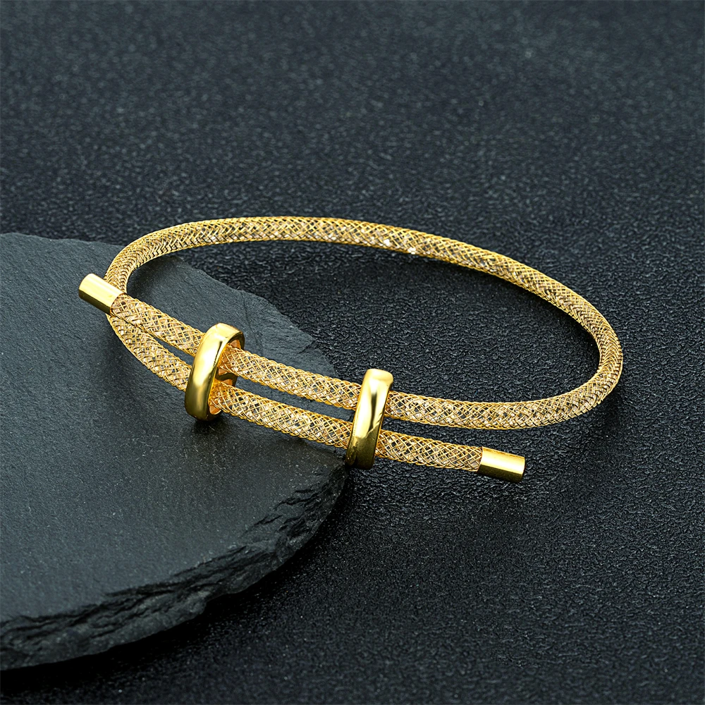 New Fashion Mesh Bracelet Men Women Charm Minimalist Crystal Bangle Stainless Steel Adjustable Jewelry Creative Couple Gifts