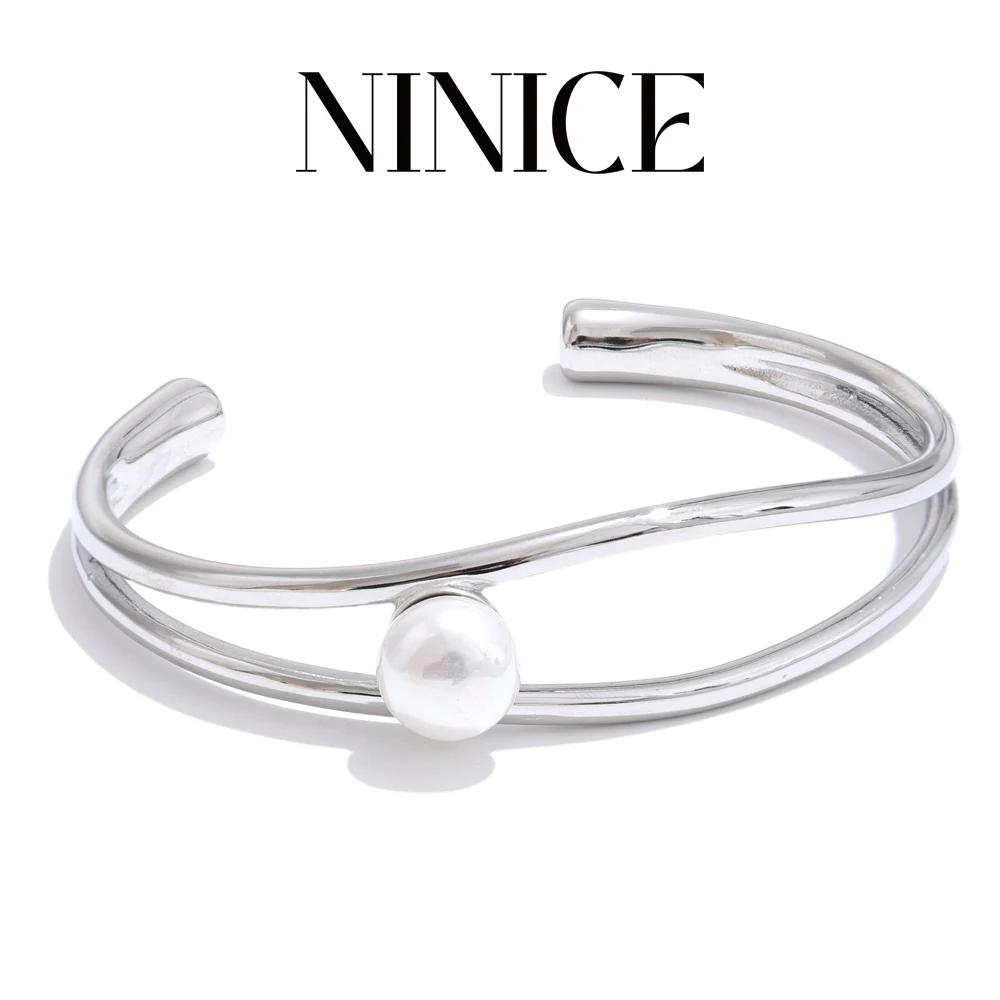 NiNice Fashion Stainless Steel Pearl Multi-Layer Hollow Bracelet Bangle Arrivals Personalized Wrist Jewelry Bijoux Femme