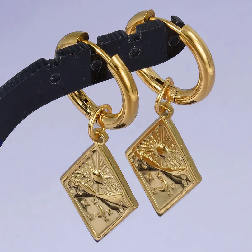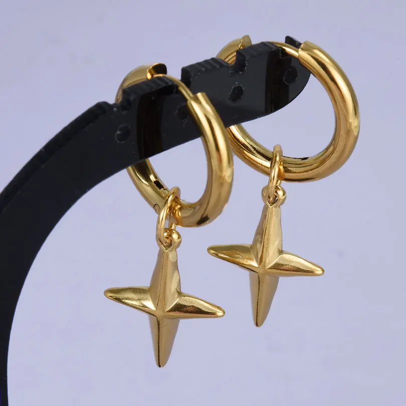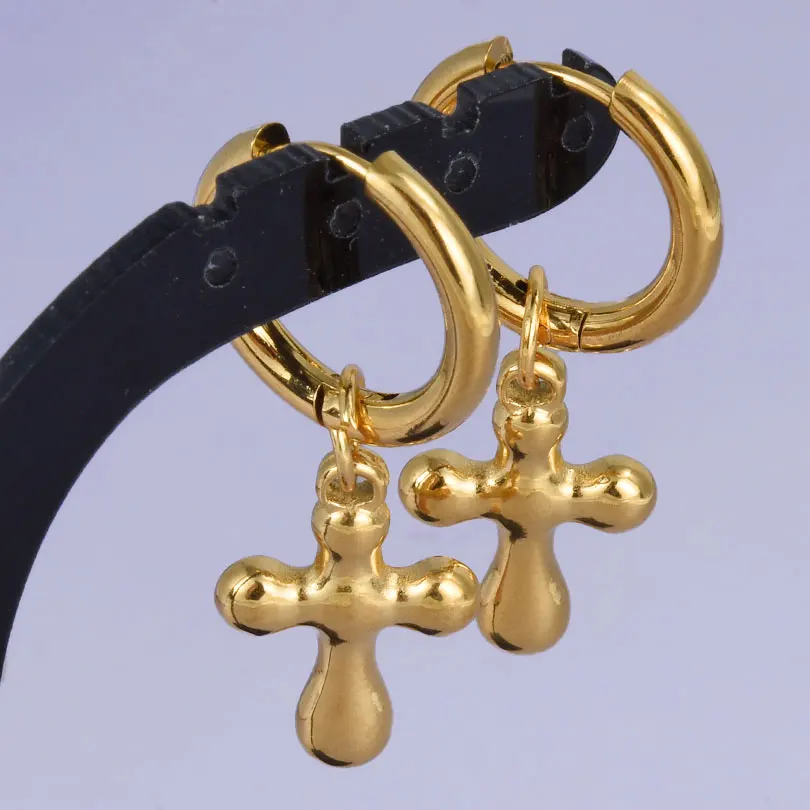 Punk Cross Sword Pendant Earring Stainless Steel Hoops Earrings For Women Men Accessories Non-Tarnish Vintage Jewelry Arete Gift