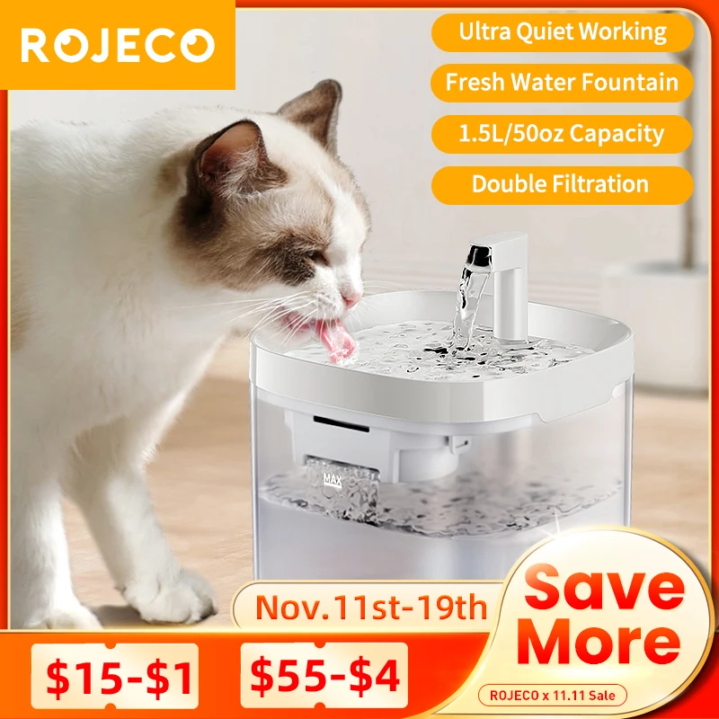 ROJECO Smart Cat Water Fountain Automatic Pet Water Dispenser For Cats Dog Drinking Purifier Fountain with Recirculate Filters