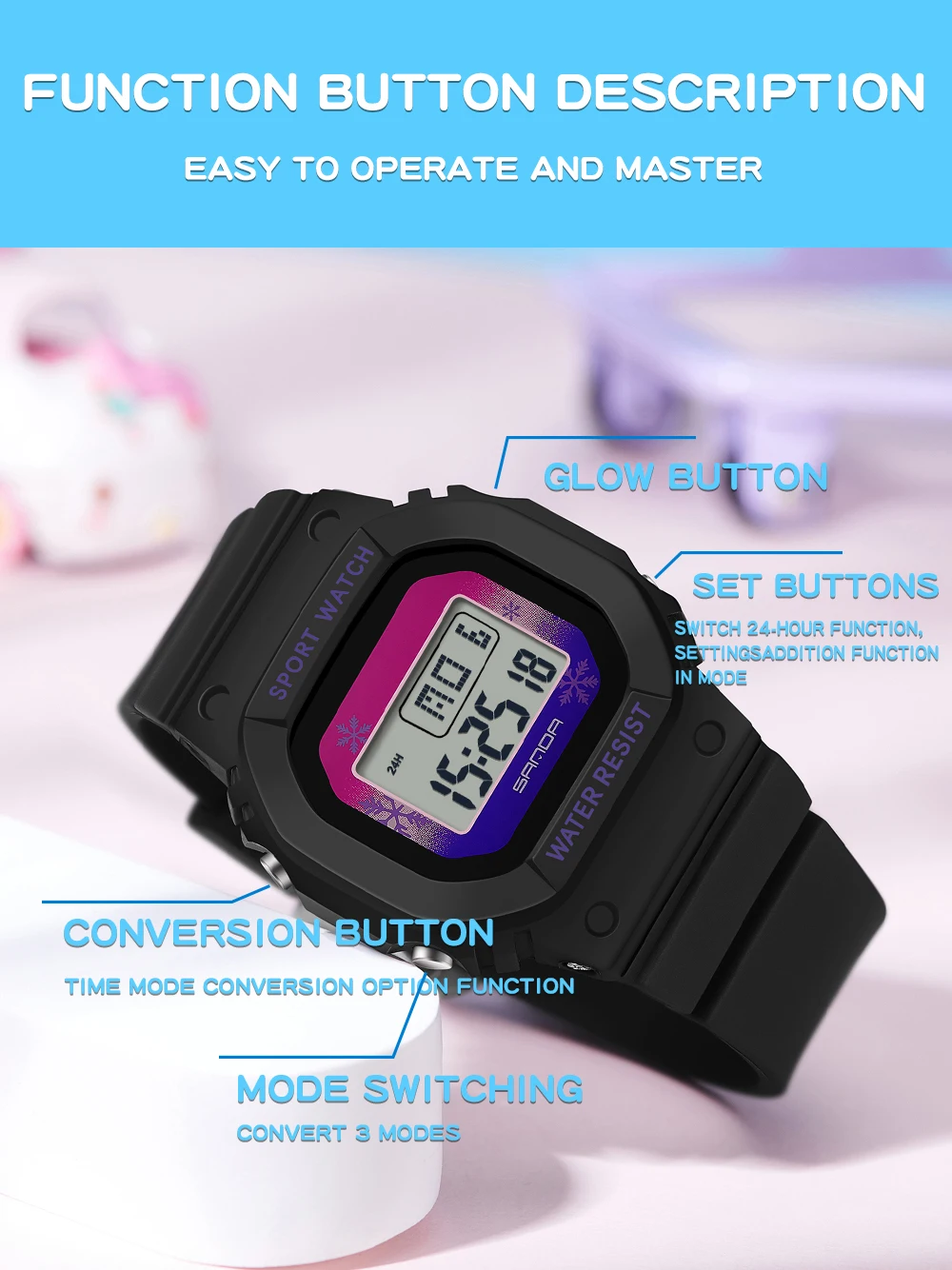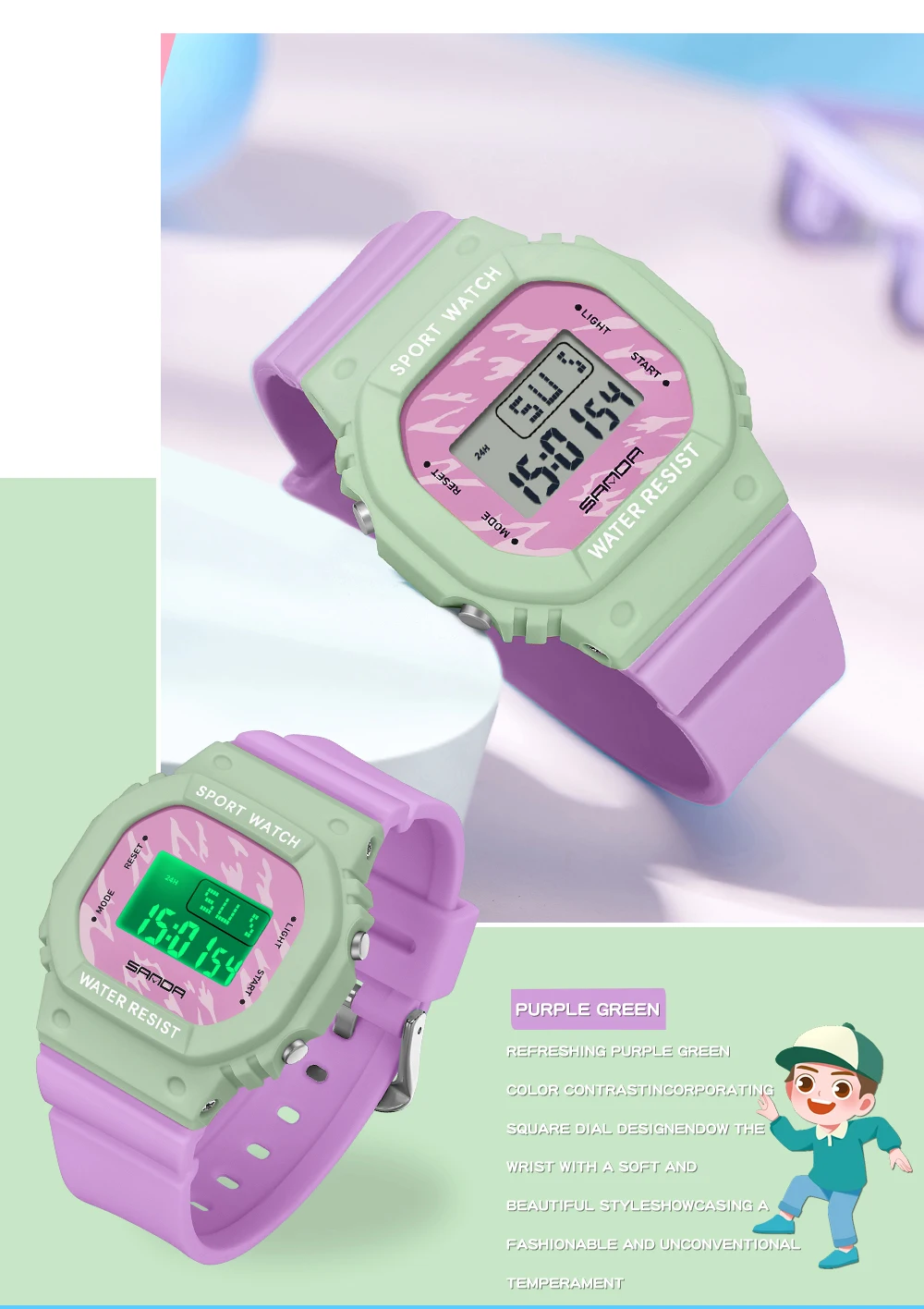 SANDA Boys Girls LED Digital Watch Children Sports Watch For Waterproof Electronic Watch Children Outdoors Casual Gift Watch