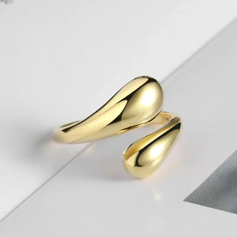 Stainless Steel Smooth Double Ball BeadsRings For Woman Open Gold ColorGeometric Wedding Couple RingsAesthetic Jewelry Gift