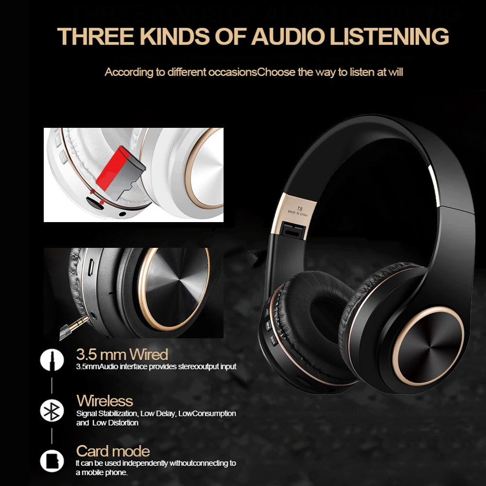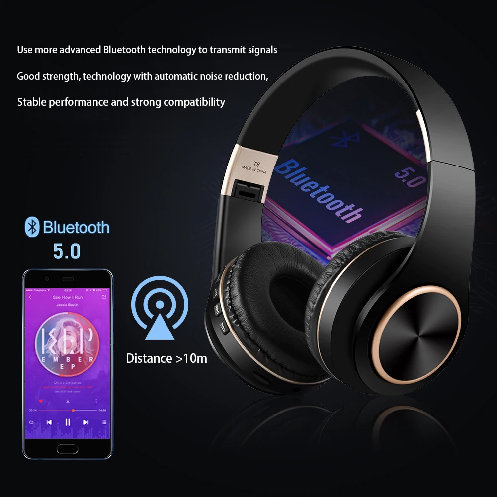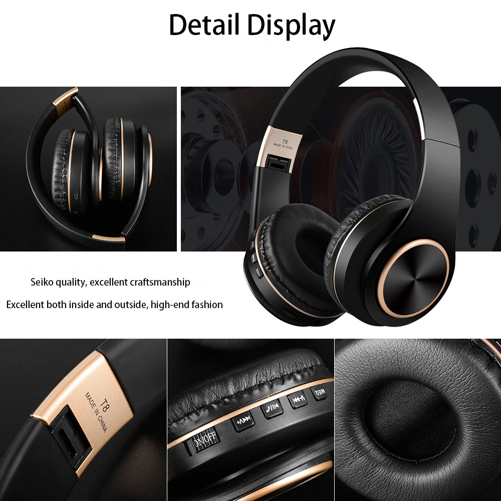 T8 Foldable Earphones Bluetooth Wireless Gaming Headphones for PC Audio Headset Collapsible Over-Ear Earphone Hedset Earphones