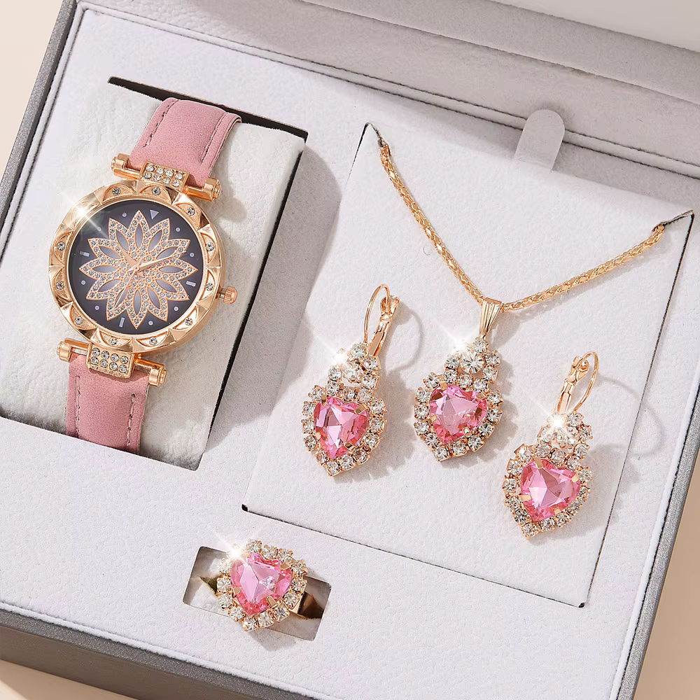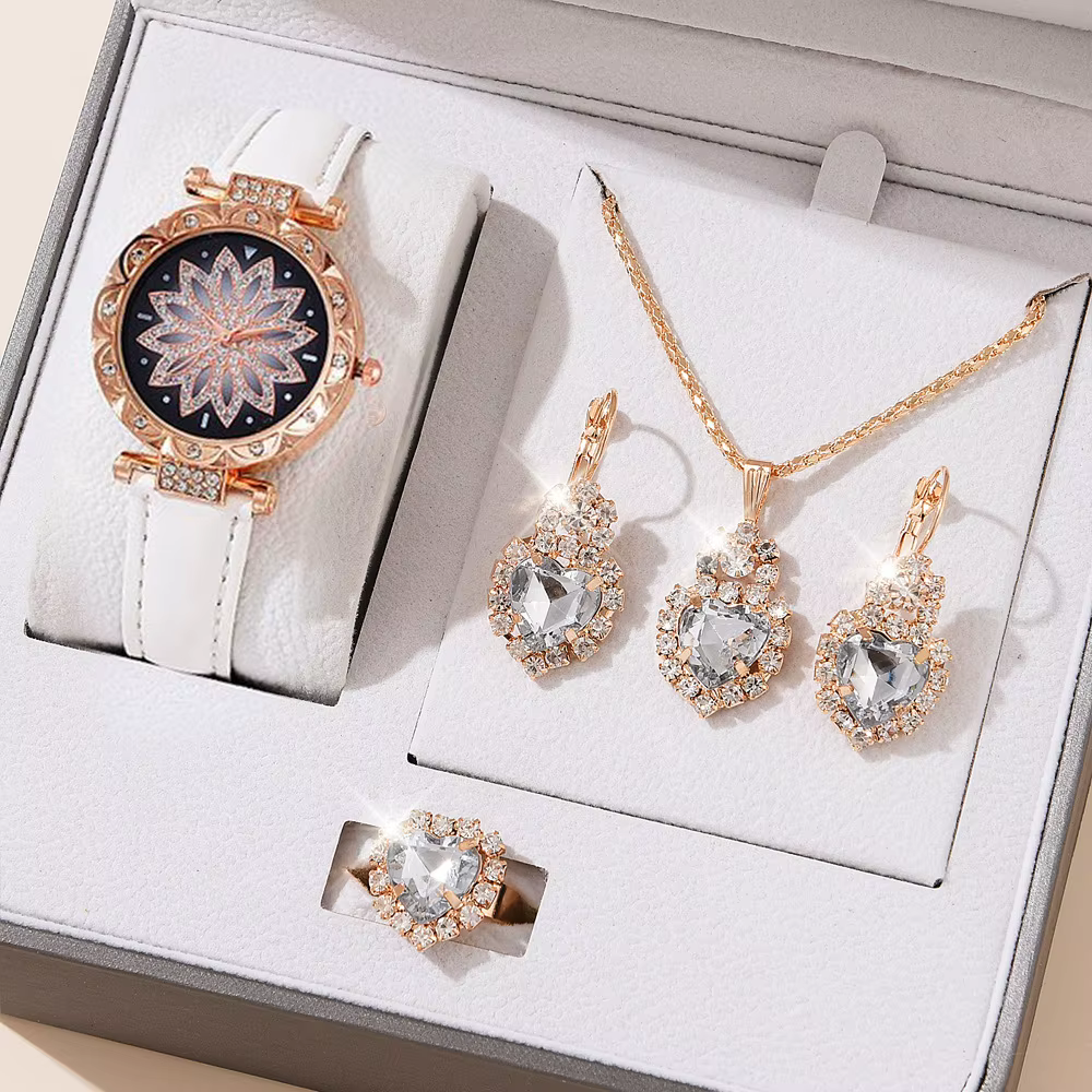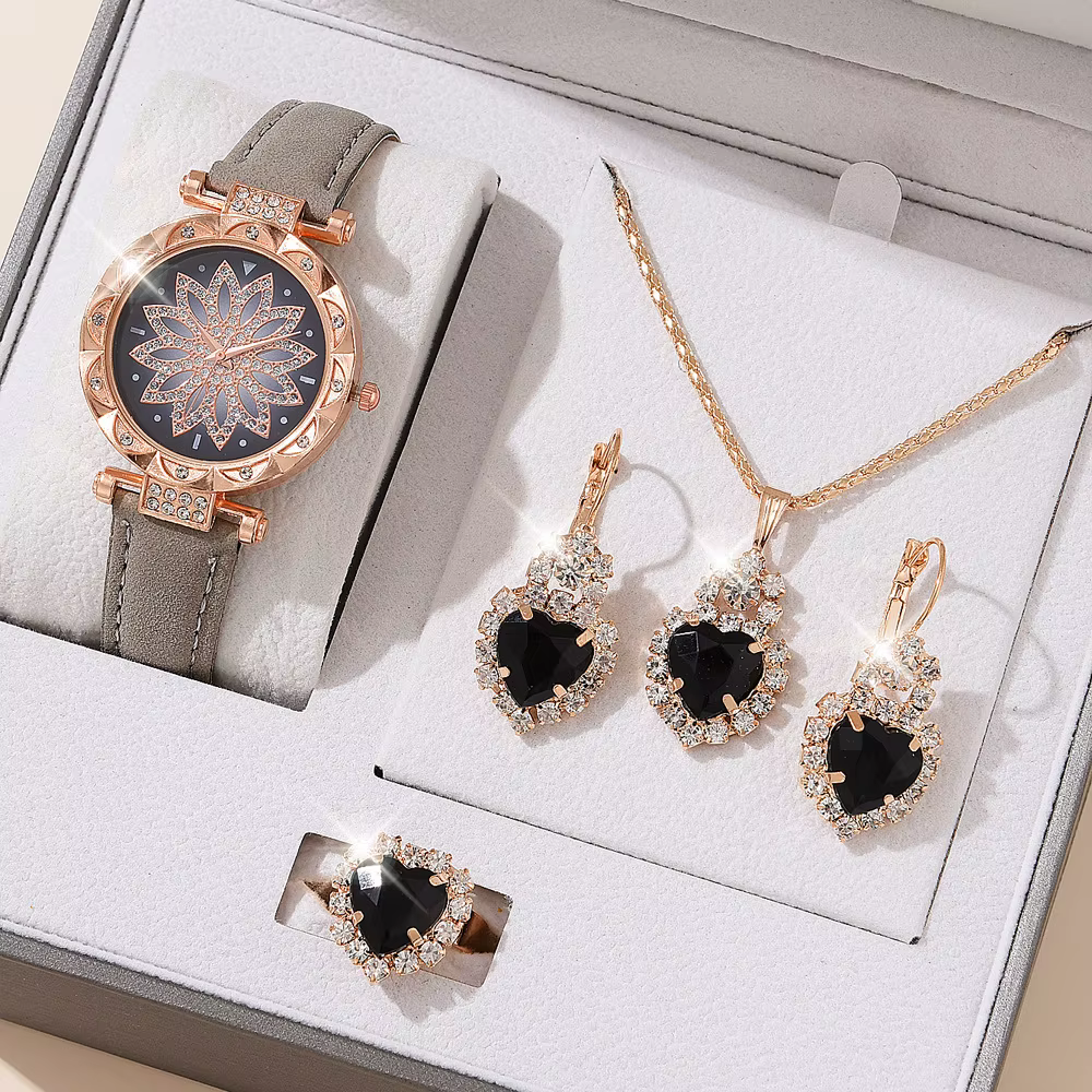 WGS-57 5 pièces montres ensemble de bijoux femmes bande de cuir dames montre Simple décontracté femmes analogique montre-bracelet Bracelet cadeau Montre Femme