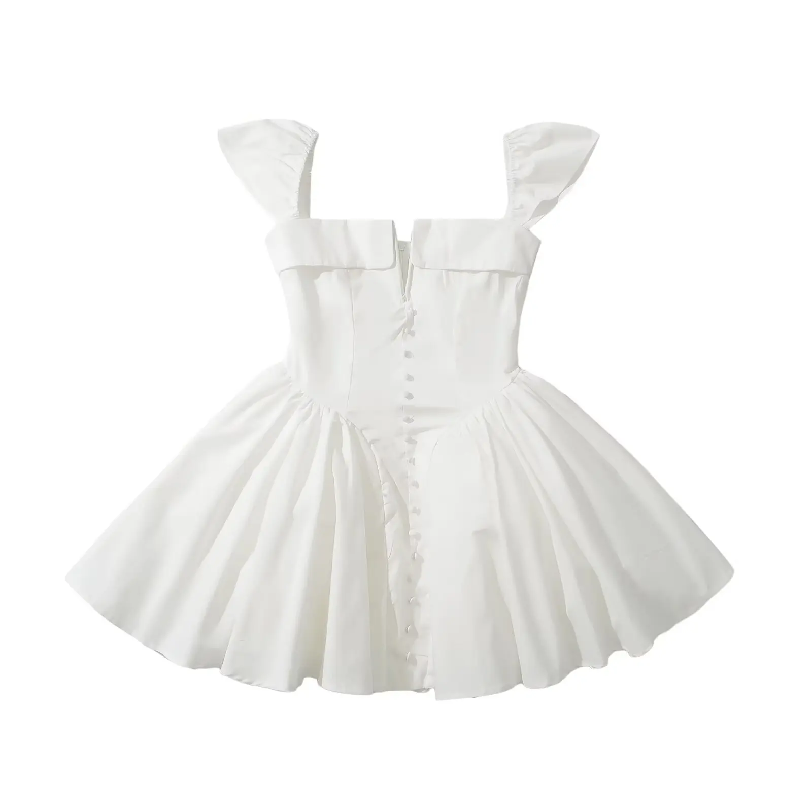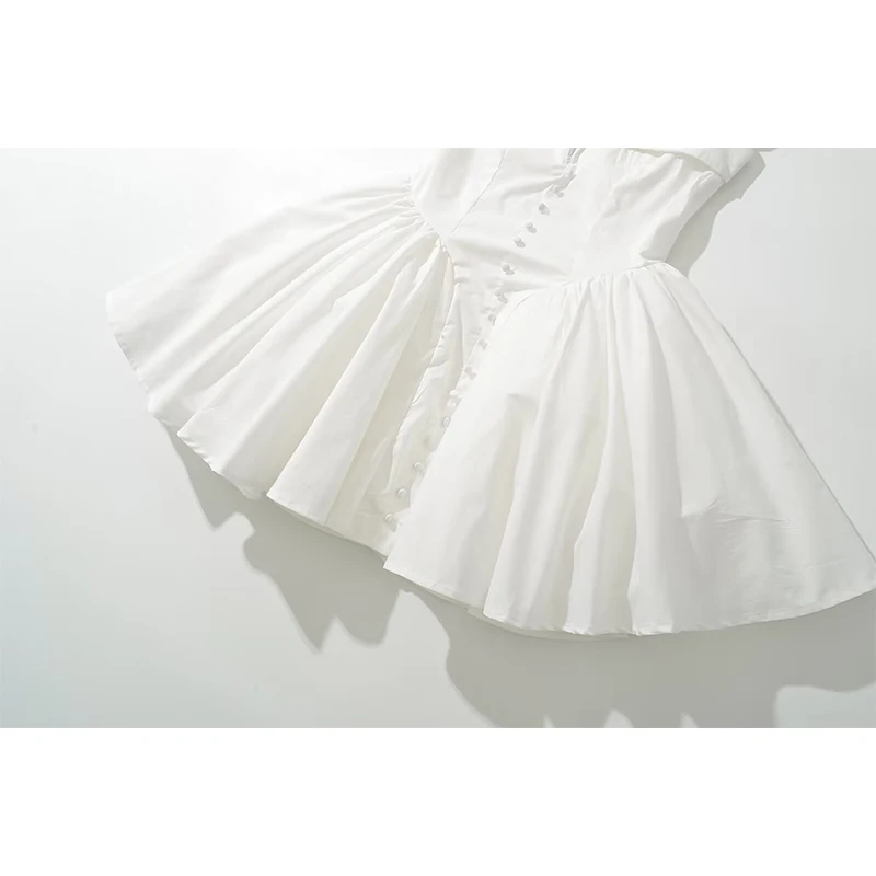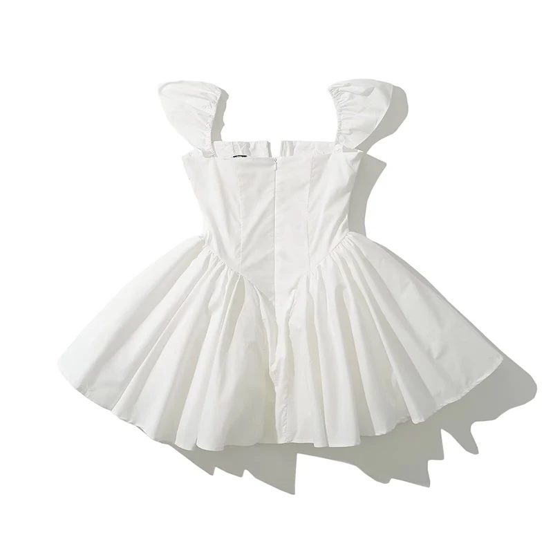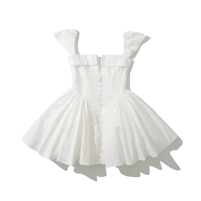 Summer Women Sexy Fit And Flare White Mini Dresses Short Sleeve Low Waist Elegant