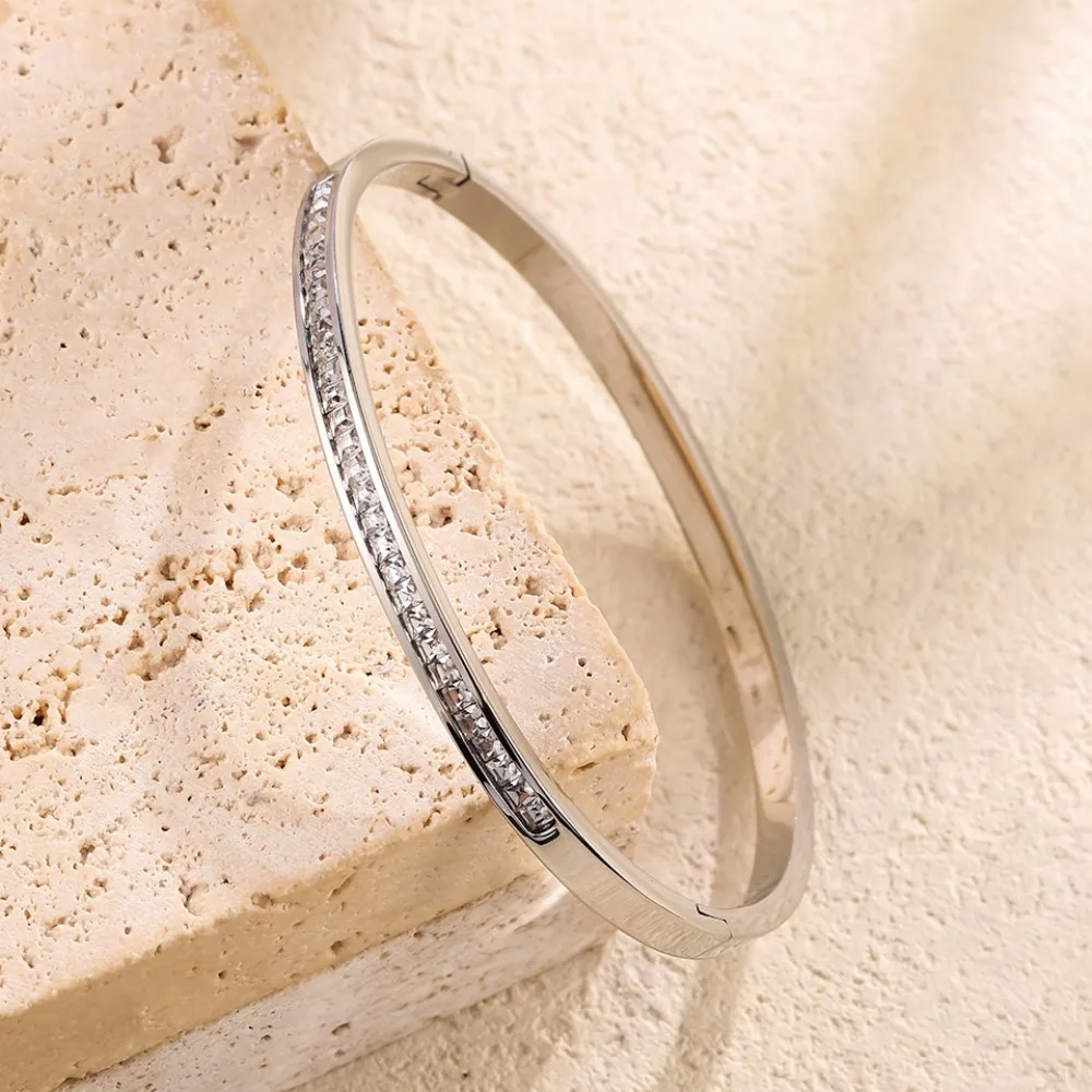 Yupsk Titanium Steel Couple’s Bracelet Shiny Zircon Inlaid Stainless Steel Bangles Gold/Silver Color Female Jewelry Gift