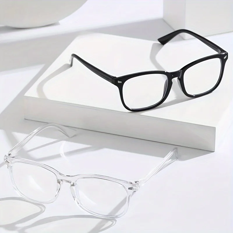 3pcs Lightweight PC Frames Minimalist Square Clear Lens Glasses – Blue Light Blocking, Full Frame, for Everyday & Casual Wear