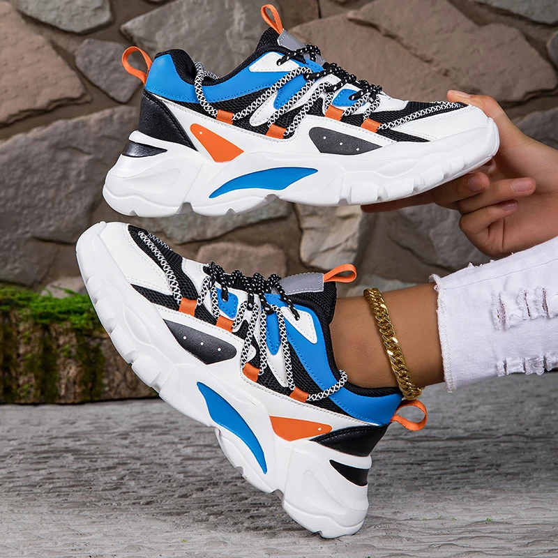 Hot Sale Zapatillas PU Thick Sole Shoes Flat Non-Slip Platform Running Shoes Casual Chunky Sneakers for Outdoor Ladies
