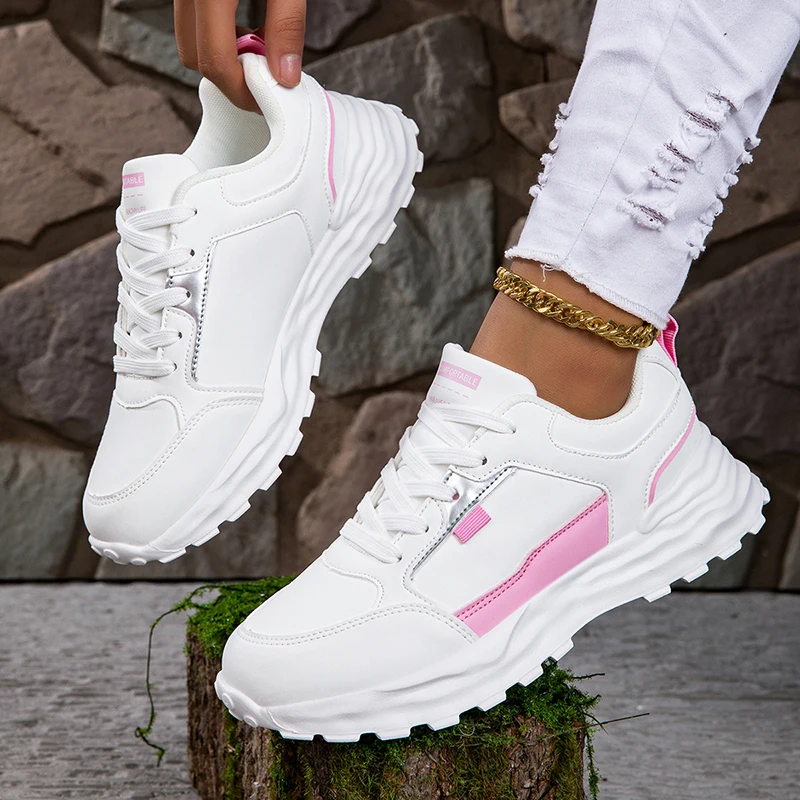 Baskets blanches et roses pour femmes, chaussures décontractées, épaisses et respirantes, en maille, pour dames, tennis
